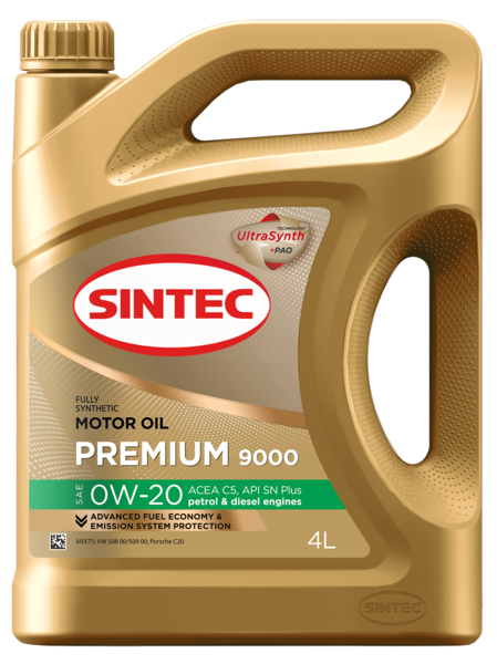Sintec Premium 9000 0W-20 C5 SN plus - полностью синтетическое моторное масло, предназначенное для использования во всех современных бензиновых двигателях, включая гибридные автомобили и автомобили, оборудованные системой START/STOP.