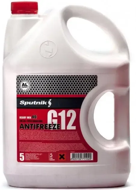Готовые к применению Антифриз SPUTNIK G-12 красный. В состав антифриза входит флуоресцентный краситель, использование которого позволяет быстро определить места протечки. Для этого достаточно просветить предполагаемое место ультрафиолетовой лампой.