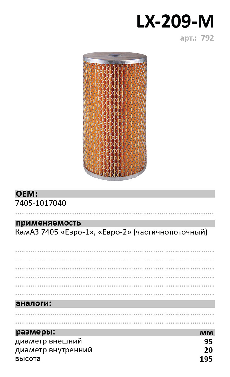 Фильтр масляный, вставка LUXE LX-209-M