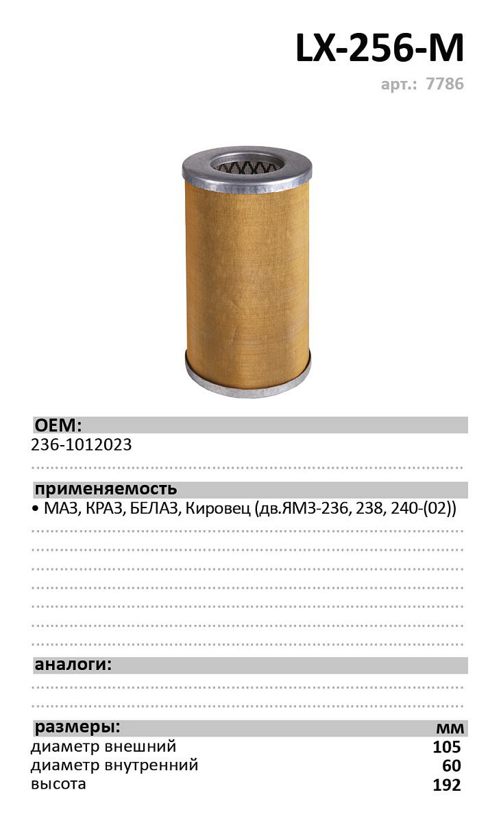 Фильтр масляный, вставка LUXE LX-256-M