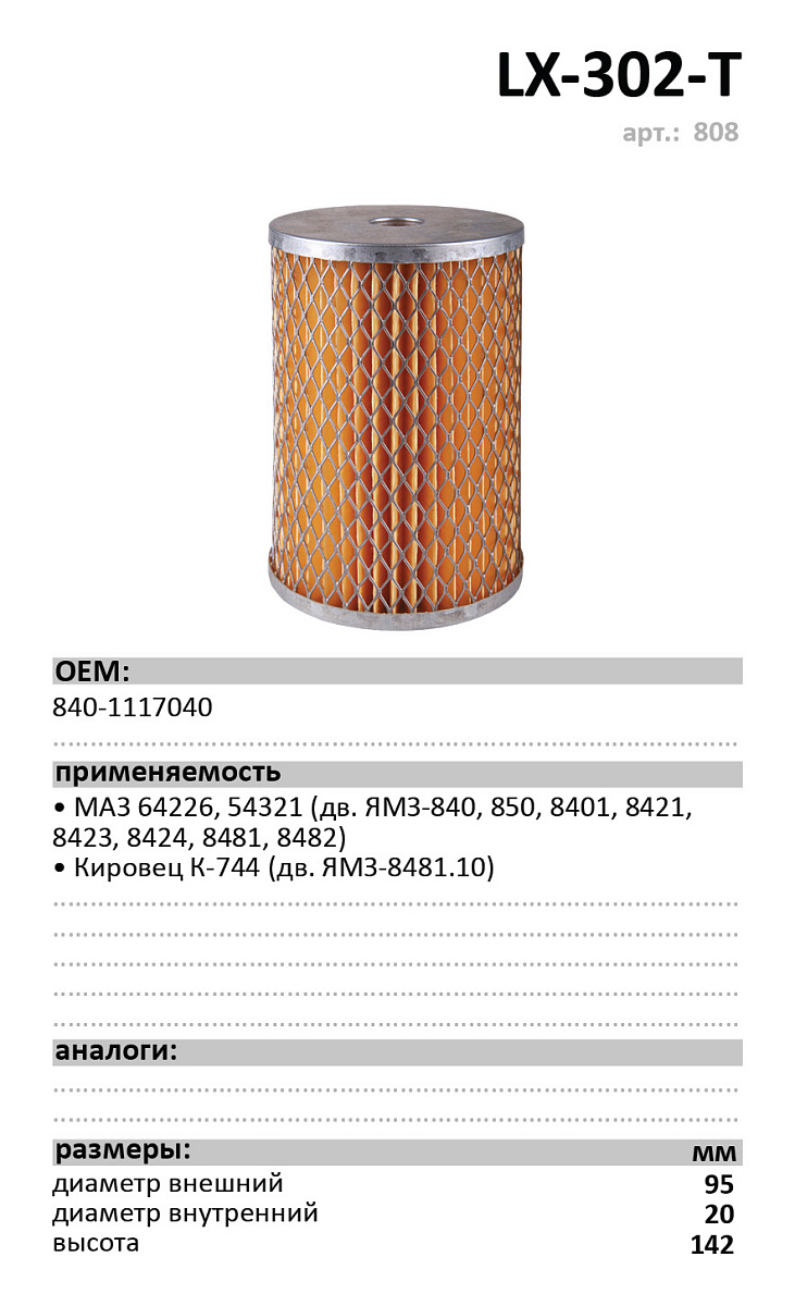 Фильтр топливный LUXE LX-302-T