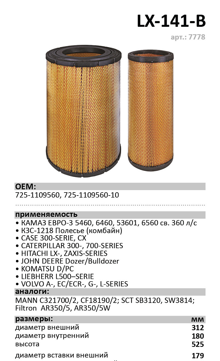 Фильтр воздушный LX-141-B