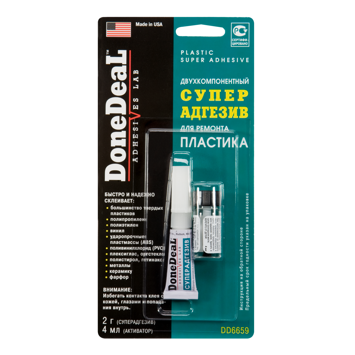 Двухкомпонентный суперадгезив для пластика DONE DEAL DD6659 2гр+4мл. в Тюмени
