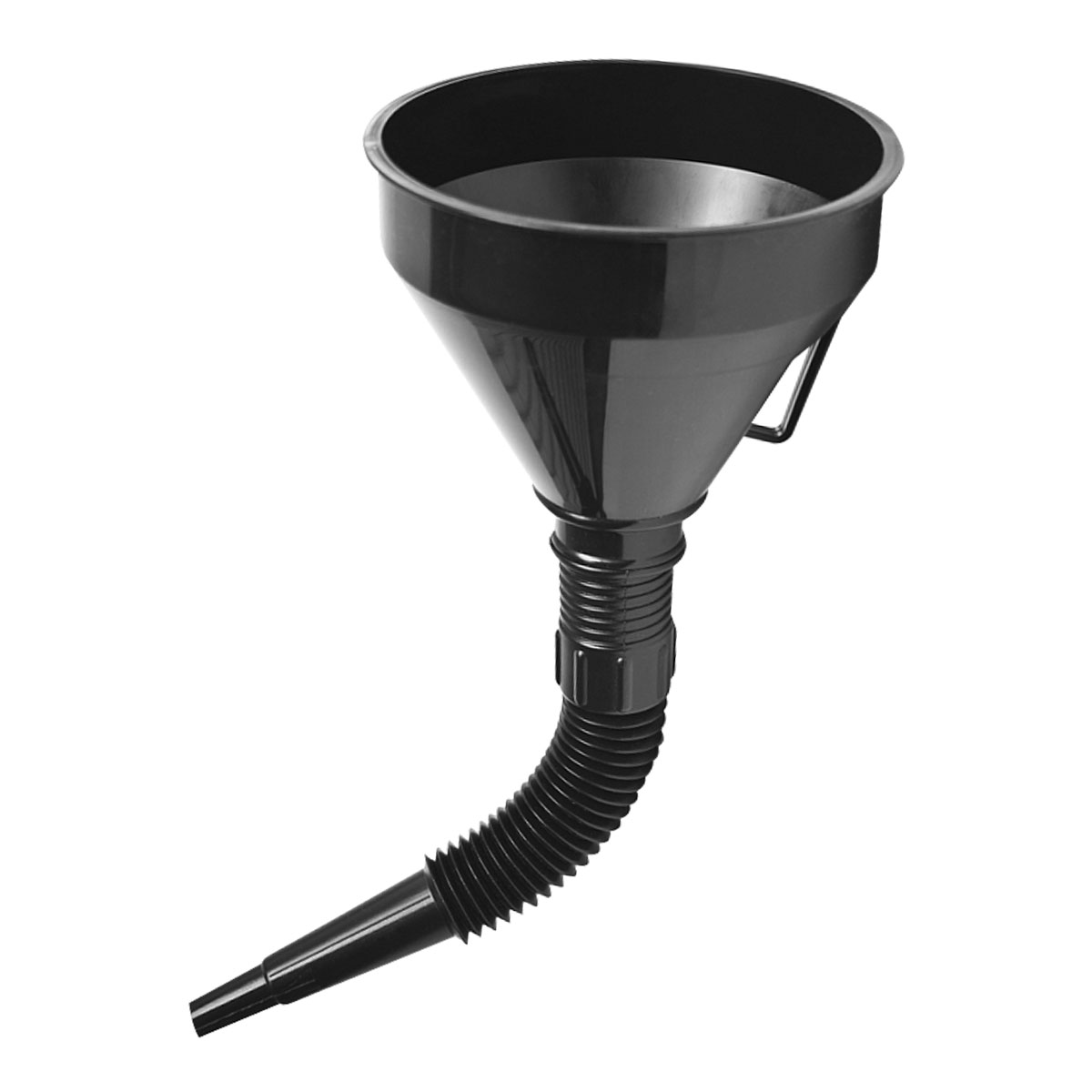Гибкий шланг воронки позволяет установить ее в любом удобном положении. Укомплектована латунной мелкозернистой сеткой для фильтрации мусора при переливании жидкости, также сетка отфильтровывает воду от ГСМ. Носик шланга можно обрезать до необходимого диаметра для увеличения пропускной способности.